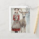 Adorable girl and a deer in a winter forest mixed media collage AI generated