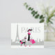 This Paris, France design features a girl and poodle walking in Paris with shopping bags. The design has a pink, black and grey colour scheme.
