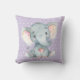Girl Baby Elephant Purple and Grey Throw Pillow