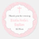 Girl baptism favour idea | pink damask classic classic round sticker