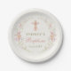 Girl Baptism Pink Floral Bow Paper Plate