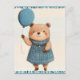 Sweet girl bear in a blue plaid dress, holding a blue balloon. A delightful addition to nursery decor or children's room art.