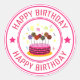 Happy Birthday round Sticker with cake and Lollipops illustrations