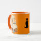 Halloween mugs with a Vintage Ellen Clapsaddle Halloween postcard image of a cute little girl in old-fashioned dress, carving an apple and throwing the peal over her shoulder for luck. From a game where the peal was to spell out the name or initials of the child's future betrothed.