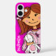 Girly cuddles pink case cute modern graphic girls case. Girl clutching her lucky white bunny. This case reads Isabelle or personalize with your child's name. Original design by Sarah Trett for www.mylittleeden.com
