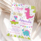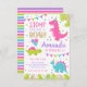 Enjoy this girly dinosaur birthday invitation, ROAR! It's the perfect way to invite guests to your little girl's dinosaur party. This is a pretty pink dino invite styled with a T Rex, jungle leaves, glitter, balloons, and more!