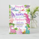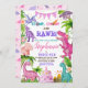 Girl Dinosaur Three-Rex 3rd Birthday Party Pink In Invitation