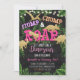 Pink Girl Birthday Invitation with Gold Dinosaurs and Tropical Leaves