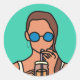 Girl drinking bubble tea modern teen classic round sticker