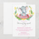 Girl Elephant Baby Shower by Mail Invitation. Virtual Baby Shower Invitation. Long Distance. Pink and Grey Card. Girl Baby Shower Invite. Watercolor Floral Flower and Leave. White Background. For further customization, please click the "Customize it" button and use our design tool to modify this template.