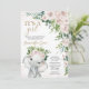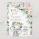 Celebrate your sweet baby girl with this adorable Girl Elephant Baby Shower Invitation. Featuring a charming baby elephant wearing a delicate pink flower crown surrounded by soft pink florals and lush greenery on the right side, perfect for a sweet and elegant shower theme. Perfect for a floral or safari-themed baby shower, this invitation brings a warm whimsical charm that guests will love. BBS504