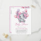 Girl Elephant Pink Balloon Script Cute Baby Shower Invitation Postcard