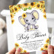 Girl Elephant Sunflower Baby Shower Invitation