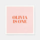 Celebrate your little one's first birthday with our adorable paper napkins featuring a pastel pink background with striking typographic design. These charming napkins not only add a touch of sweetness to the table but also allow you to personalize the celebration with a special message. Create a memorable and cute atmosphere for your girl's milestone birthday, where every detail reflects the joy and love of this precious occasion."
