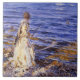 This design features a painting by the American artist John Singer Sargent (1856–1925). It depicts a young woman in a long white dress standing on a pebble beach. She is fishing with a rod and a net. There are some ducks swimming on the water, which is gently rippling with waves. The lady has her back to the viewer and she is intently focused on the task of catching fish. The original artwork was painted by John Singer Sargent in 1913.