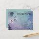 This postcard is an announcement of a new home, apartment, condo etc. It features a girl flying with an umbrella, a melting clock and a twisted lamp post. A tree is to the right and flowers are at the bottom. The text on the front says "I'm moving". The text on the front and back is editable so go ahead and change what it says. Change the font size, placement and colours too and make it your own!