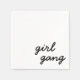 Simple, stylish "girl gang" quote design in modern minimalist script typography in black and white. Celebrate women and girl power for all celebrations, a bachelorette party or a cute matching set for mother and daughters, sisters and your female friends!