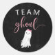 Vote team pink at a gender reveal party with this sticker! Illustration of a girl ghost. The text says "team ghoul."