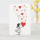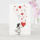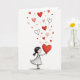 This lovely digital drawing shows a sweet moment of kindness, using a simple style to express deep feelings. In the center is a cute girl with dark hair tied up with a bright red band, wearing a pretty white dress with soft folds. She looks to the side with rosy cheeks and a gentle smile, giving off a feeling of wonder and goodness. She holds out a big, intense red heart with care, the main focus of the picture. Above her, a bunch of smaller hearts float up gracefully, in shades from deep red to light pink, with some black outlines. These light shapes give off a feeling of overflowing love and warmth. Against a pure white background, the red colors and the girl's calm presence really stand out, creating a mood of innocence, happiness, and endless love. The smooth lines and gentle watercolor effects give this image a welcoming, handmade feel. Look for this heartwarming scene on a Valentine's Day card to share your love and affection ❤️💌🍫.