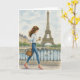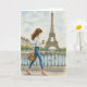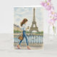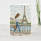 Bring Parisian elegance to every occasion with this Eiffel Tower girl with coffee greeting card.