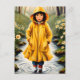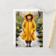 This charming postcard features a girl in a yellow raincoat, standing in a shallow stream of water, with white and yellow daisies scattered along the edges. The vibrant colours of the raincoat and the flowers will brighten up any day, and the heartwarming scene will bring a smile to your face. This image has been created with the help of AI tools.
