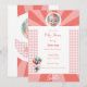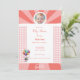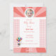 Cheerful baby shower invitation with white and pink colour. Topped with a flying baby carried in balloons. A beautiful keepsake of the most beautiful occasion