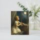 Girl Looking At A Full Moon Through Window Postcard