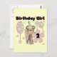A girl monkey surrounded by pink balloons and flowers sits on some birthday gifts and text reads "Birthday Girl 2" on monkey 2nd birthday t-shirts, bodysuits, cards, tote bags, magnets, and more.
