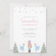 This editable girl's nutcracker birthday party invitation editable sets the tone for your winter birthday celebration. The MARIE Collection features a winter white background with a pastel pink nutcracker, sugarplum fairies and a flocked christmas tree adorned with pink ornaments, and pastel snowflakes along the top of the pink nutcracker birthday invitation. A duo of serif and script fonts in pastel pink and soft grey incldued all of the editable details. There will be visions of sugar plum fairies at this winter girl birthday party that is perfect for a winter birthday celebration.