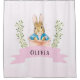 You will love this Peter rabbit sitting in a bucket on a pink canvas and pink banner.