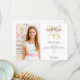 Add a vertical size photo. A cream, beige colored bow and a golden cross as decor. Personalize and add a name and thank you note.