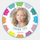Modern, colourful, kids Birthday thank you stickers for favours with photo of the girl and cute kawaii cat pattern.