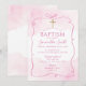 Girl Pink Bow Gold Cross Christening Baptism Invitation