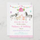 This adorable invitation features farm animals with balloons and faux gold foil confetti.