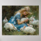 Girl Playing With White Bunnies At Easter Poster
