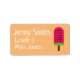 Cute girly colourful ice-block popsicle themed book labels or school item sticker labels for young school kids. This design features a cute cartoon watermelon popsicle against a customisable pink background. The text is fully customisable to include own name and class details.