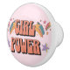 Colourful GRL PWR (Girl Power) text design illustration with retro style stars decoration on halftone background