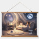 Girl prays in moonlight and by starlight, custom hanging tapestry