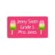 Cute girly colourful raspberry ice-block popsicles themed book labels or school item sticker labels for young school kids. This design features a cute berry yummy popsicles against a customisable lime background. The text is fully customisable to include own name and class details.