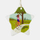 Girl Riding Bicycle Up Tree Circle Retro Ceramic Ornament