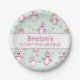 Girl’s first birthday pink winter penguin paper plate