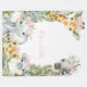 Girl safari blanket with adorable baby safari animals with pretty blush pink flowers on a choose your own colour background. This safari baby blanket can be personalized with the text of your choice.