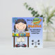 A girl in the science lab surrounded by test tubes, beakers, and areas you can customize before ordering on colourful science theme birthday party invitations! If your child loves science and wants a mad scientist birthday party you'll love our easy to customize science birthday invites!