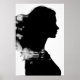Girl Silhouette Scenic Black & White Modern Art Poster.