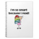 Cute stick figure girl with a pile of books design that promotes reading in children with text that reads "I'm so smart because I read!".