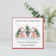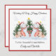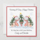 This Christmas card is suitable for twin girls on their first, second or third Christmas. The design includes a red border outline, light blue snowflakes, watercolour Christmas trees, candy canes, presents and twin snowmen.