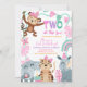 GIRL TWO at the zoo birthday invitation, Safari Jungle Animal 2nd Birthday Invite, Editable Wild Animals Kids Birthday