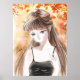 This is a print of my original anime girl illustration, with a series. The artwork has a romantic feel and gold autumn atmosphere. The flying golden leaves add charm to it.