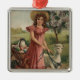 Girl Walking Lamb, Chick, and Rooster Metal Ornament