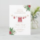 Celebrate your baby girl’s special day with this Winter Onederland invitation featuring a watercolor red baby dress and pine greenery.